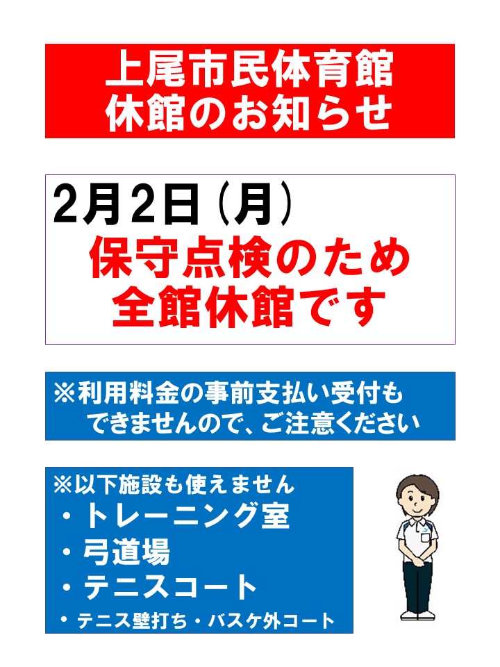 2月2日(月)保守点検休館日のお知らせ